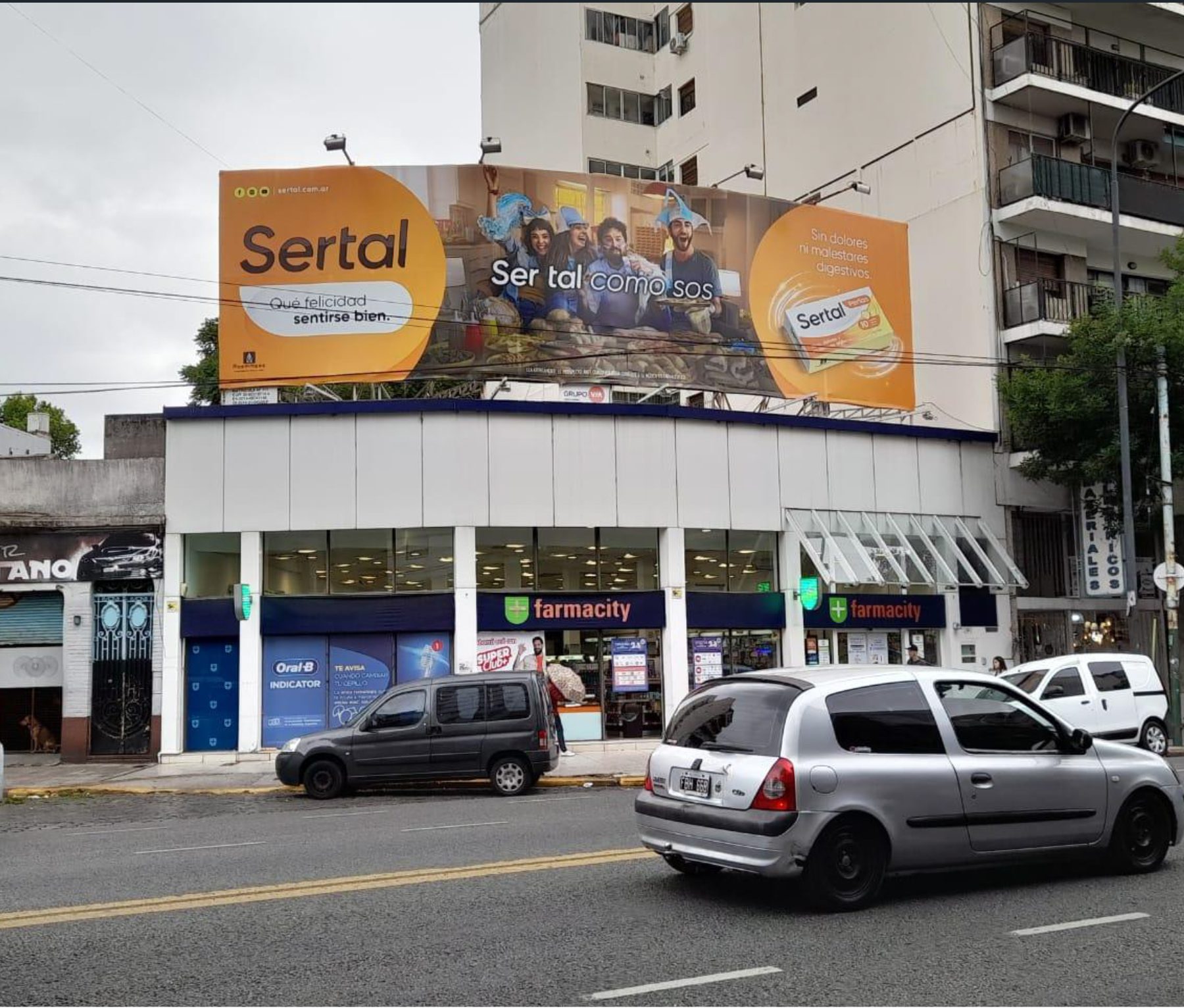 Cartel frontlight de lona tensada de gran impacto en ubicación estratégica con óptima visualización vehicular y peatonal.