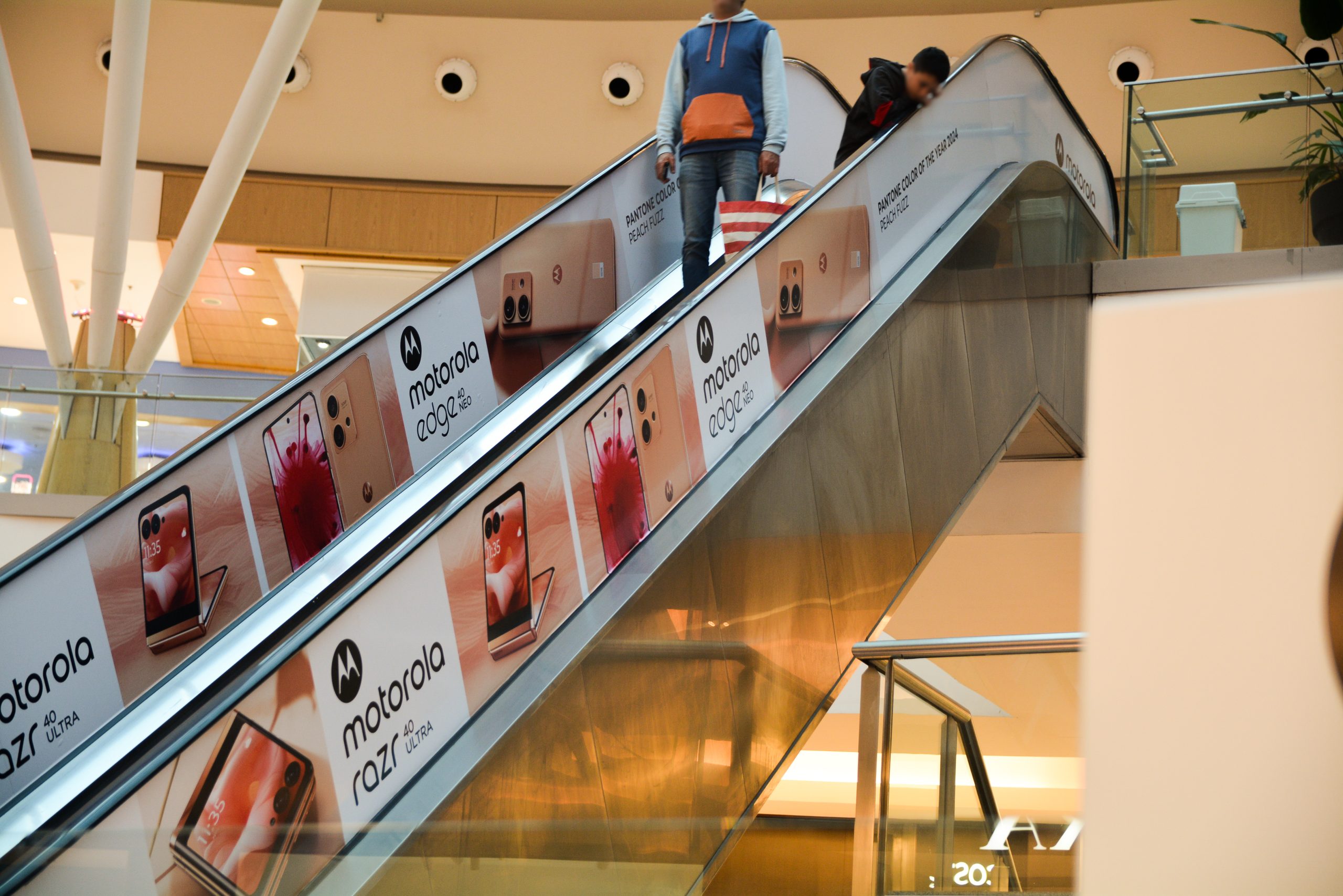 Banners bifaz de gran formato impresos en lona vinílica de alta definición ubicados estratégicamente áreas de circulación del shopping.